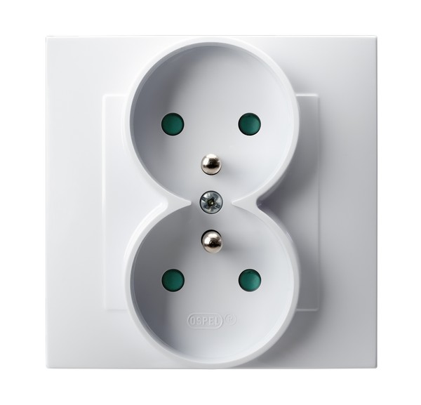 SZAFIR Gniazdo podwójne z uziemieniem z przesłonami torów prądowych, kompletne z ramką - kolor biały