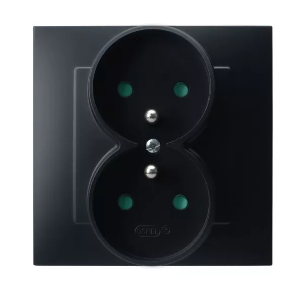 SZAFIR Gniazdo podwójne z uziemieniem z przesłonami torów prądowych, kompletne z ramką - kolor czarny matowy