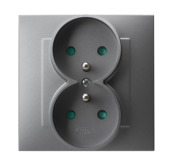 SZAFIR Gniazdo podwójne z uziemieniem z przesłonami torów prądowych, kompletne z ramką - kolor szary mat