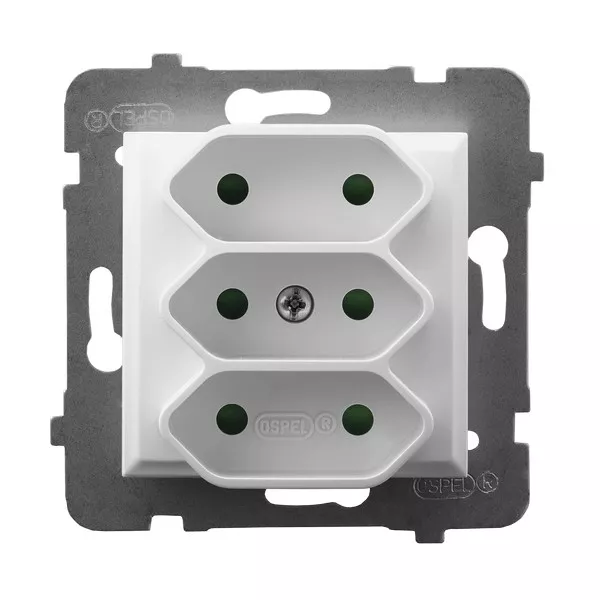 ARIA Gniazdo potrójne EURO z przesłonami torów prądowych - kolor biały