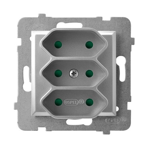 ARIA Gniazdo potrójne EURO z przesłonami torów prądowych - kolor srebro