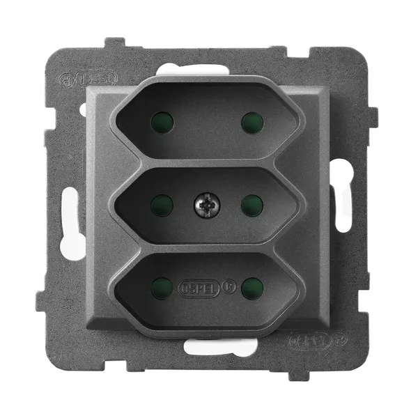 ARIA Gniazdo potrójne EURO z przesłonami torów prądowych - kolor szary mat