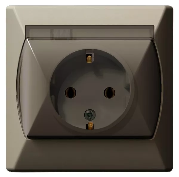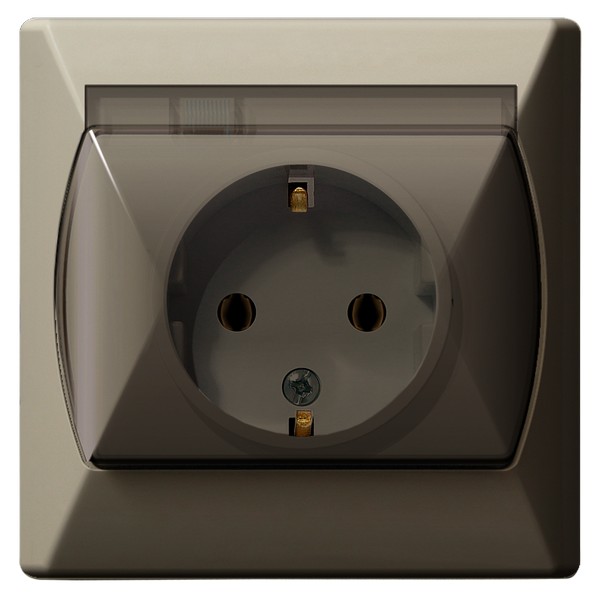 AKCENT Gniazdo bryzgoszczelne z uziemieniem schuko IP-44 wieczko przezroczyste - kolor beżowy
