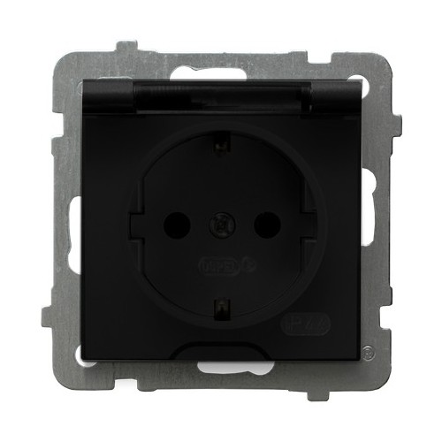 AS Gniazdo bryzgoszczelne z uziemieniem schuko IP-44 wieczko przezroczyste - kolor czarny matowy