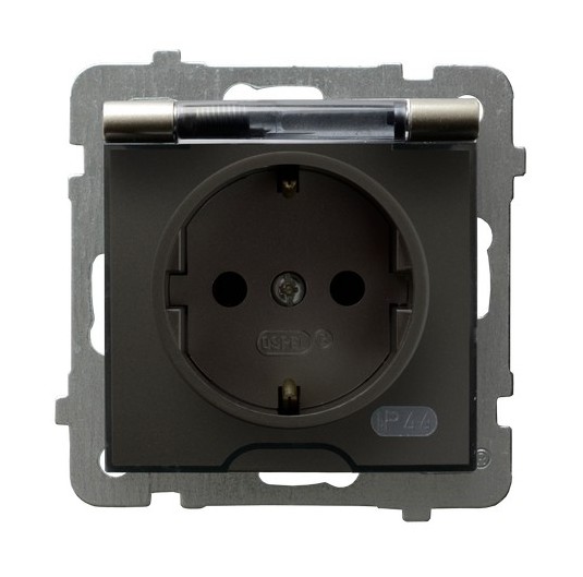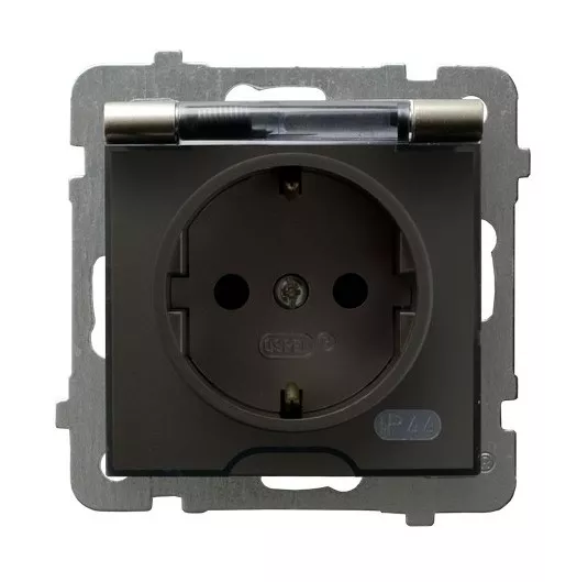 AS Gniazdo bryzgoszczelne z uziemieniem schuko IP-44 wieczko przezroczyste - kolor satyna light
