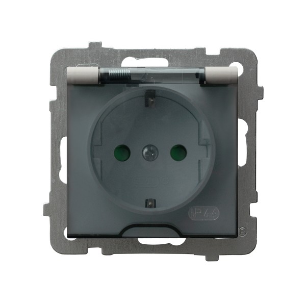 AS Gniazdo bryzgoszczelne z uziemieniem schuko IP-44 z przesłonami torów prądowych wieczko przezroczyste - kolor kaszmir