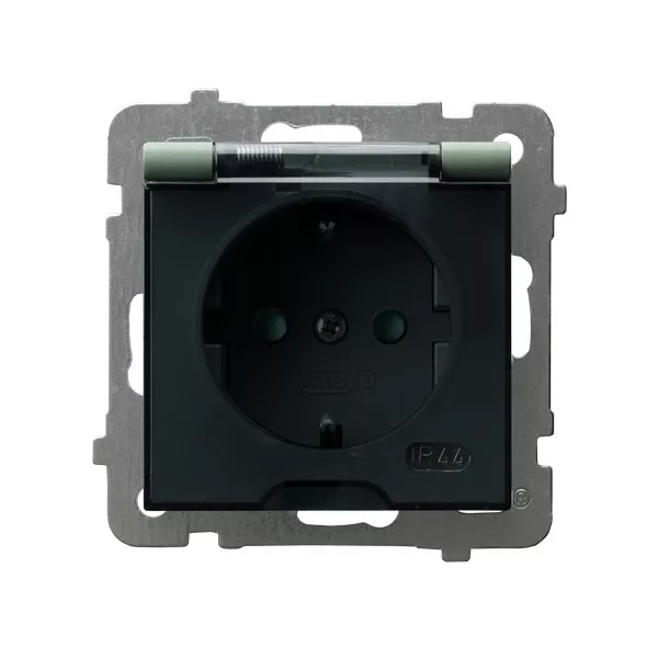AS Gniazdo bryzgoszczelne z uziemieniem schuko IP-44 z przesłonami torów prądowych wieczko przezroczyste - kolor zielony mat