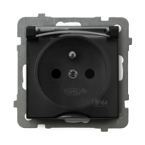 AS Gniazdo bryzgoszczelne z uziemieniem IP-44 wieczko przezroczyste - kolor czarny matowy