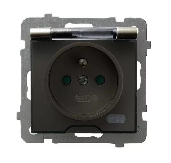 AS Gniazdo bryzgoszczelne z uziemieniem IP-44 z przesłonami torów prądowych wieczko przezroczyste - kolor satyna light