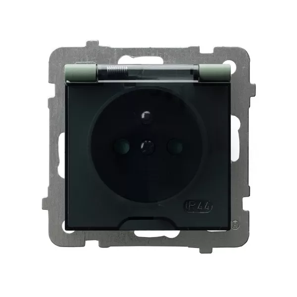 AS Gniazdo bryzgoszczelne z uziemieniem IP-44 z przesłonami torów prądowych wieczko przezroczyste - kolor zielony mat