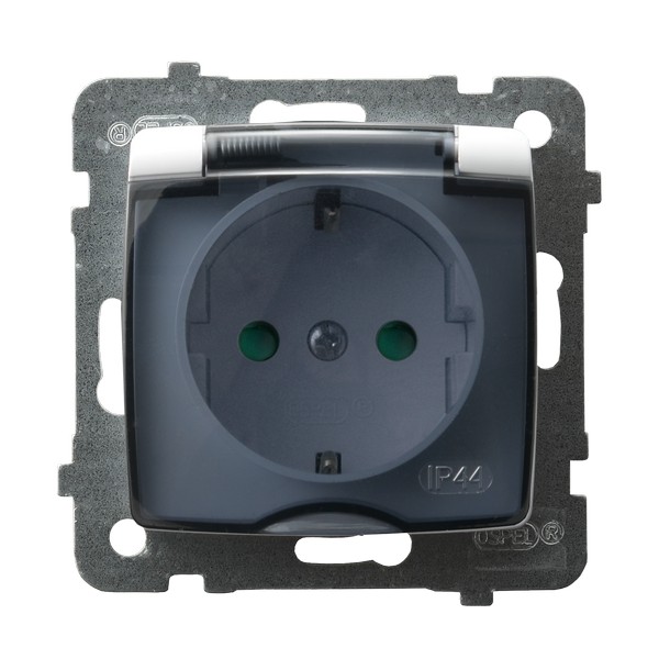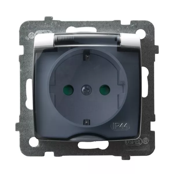 KARO Gniazdo bryzgoszczelne z uziemieniem schuko IP-44 z przesłonami torów prądowych wieczko przezroczyste - kolor biały