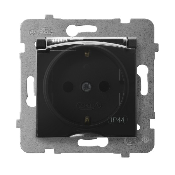 ARIA Gniazdo bryzgoszczelne z uziemieniem schuko IP-44 wieczko przezroczyste - kolor czarny matowy
