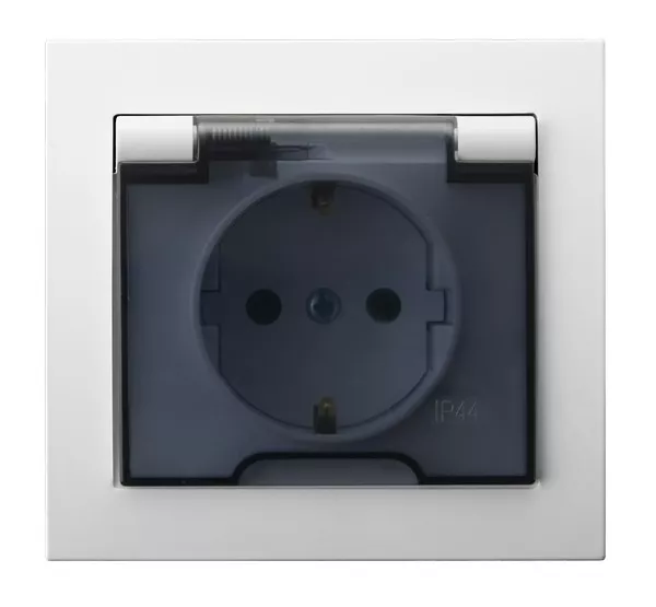 KIER Gniazdo bryzgoszczelne z uziemieniem schuko IP-44 wieczko przezroczyste - kolor biały