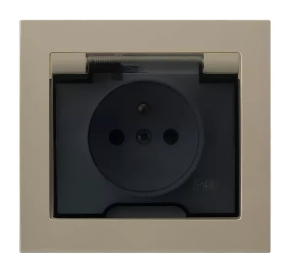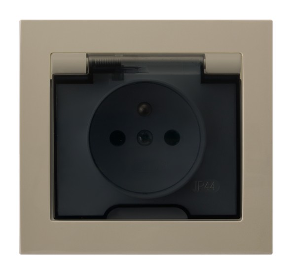 KIER Gniazdo bryzgoszczelne z uziemieniem IP-44 wieczko przezroczyste - kolor beżowy