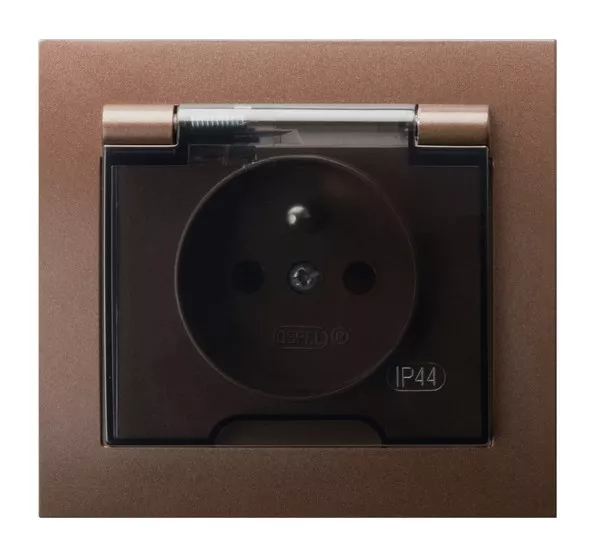 KIER Gniazdo bryzgoszczelne z uziemieniem IP-44 wieczko przezroczyste - kolor brązowy metalik