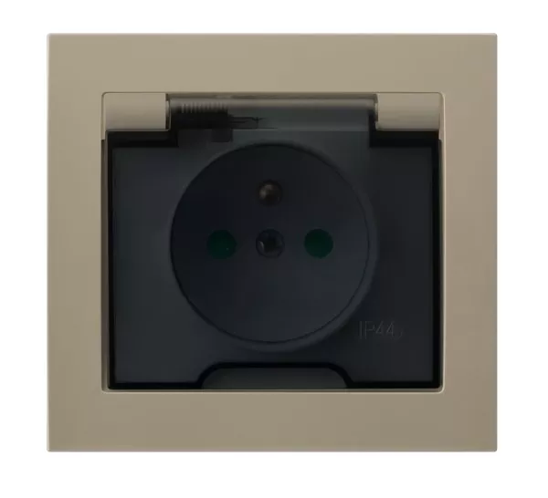 KIER Gniazdo bryzgoszczelne z uziemieniem IP-44 z przesłonami torów prądowych wieczko przezroczyste - kolor beżowy