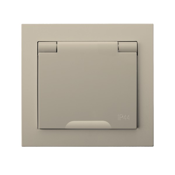 KIER Gniazdo bryzgoszczelne z uziemieniem IP-44 z przesłonami torów prądowych wieczko w kolorze wyrobu - kolor beżowy