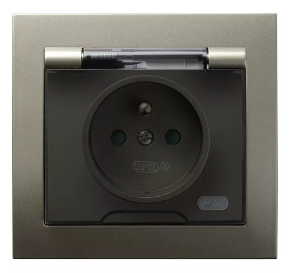 KIER Gniazdo bryzgoszczelne z uziemieniem IP-44 z przesłonami torów prądowych wieczko przezroczyste - kolor satyna light