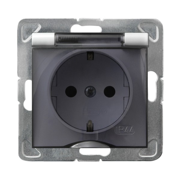 IMPRESJA Gniazdo bryzgoszczelne z uziemieniem schuko IP-44 wieczko przezroczyste - kolor biały