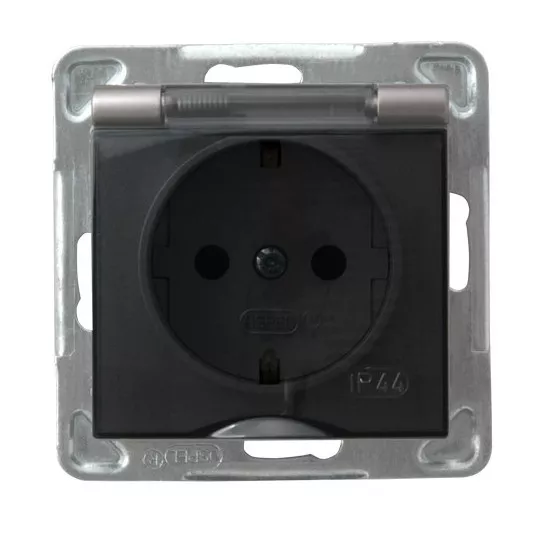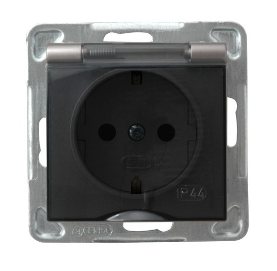 IMPRESJA Gniazdo bryzgoszczelne z uziemieniem schuko IP-44 wieczko przezroczyste - kolor tytan