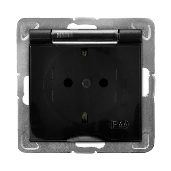 IMPRESJA Gniazdo bryzgoszczelne z uziemieniem schuko IP-44 wieczko przezroczyste - kolor czarny matowy