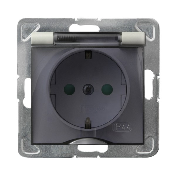 IMPRESJA Gniazdo bryzgoszczelne z uziemieniem schuko IP-44 z przesłonami torów prądowych wieczko przezroczyste - kolor ecru