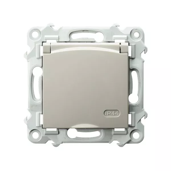 SZAFIR Gniazdo bryzgoszczelne z uziemieniem IP-44 z przesłonami torów prądowych wieczko przezroczyste - kolor kaszmirowy beż