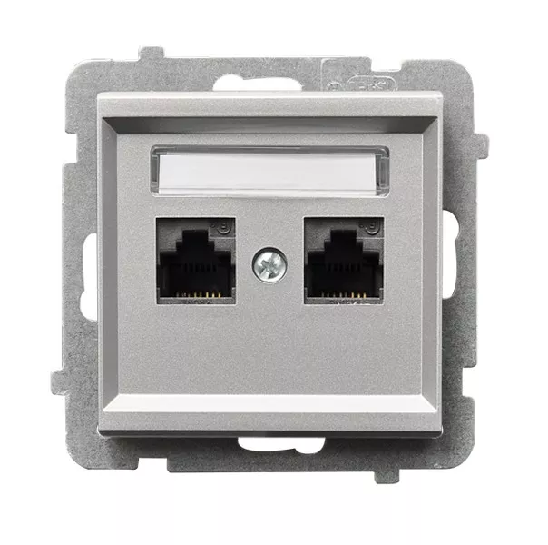 SONATA Gniazdo komputerowe, podwójne, kat. 6, KRONE, bez ramki , kolor srebro mat MMC