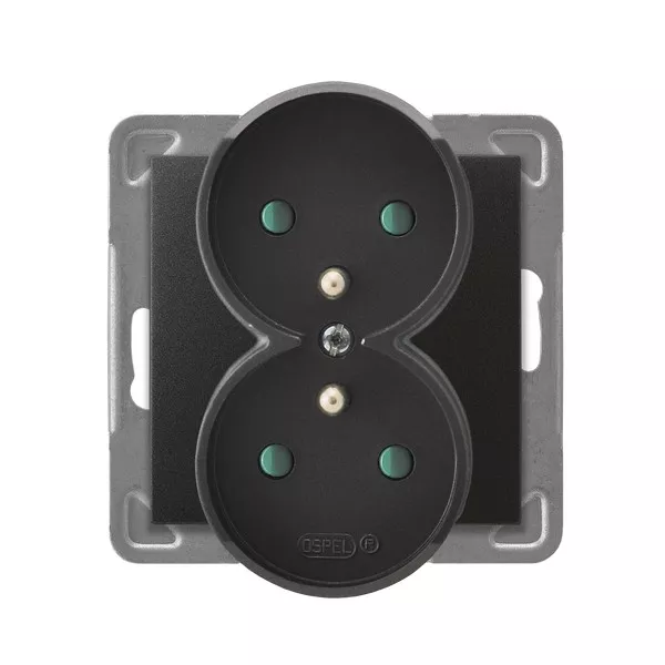 IMPRESJA Gniazdo podwójne z uziemieniem z przesłonami torów prądowych, moduł bez ramki - kolor antracyt GP-2YRAZP/m/50
