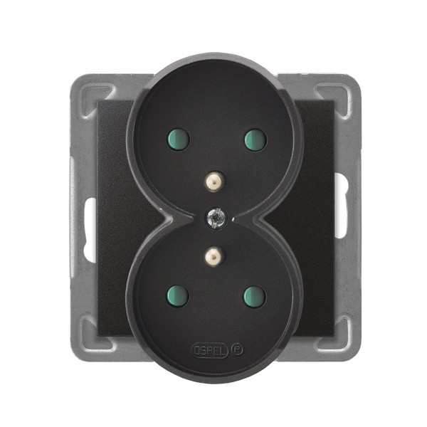 IMPRESJA Gniazdo podwójne z uziemieniem z przesłonami torów prądowych, moduł bez ramki - kolor antracyt GP-2YRZP/m/50