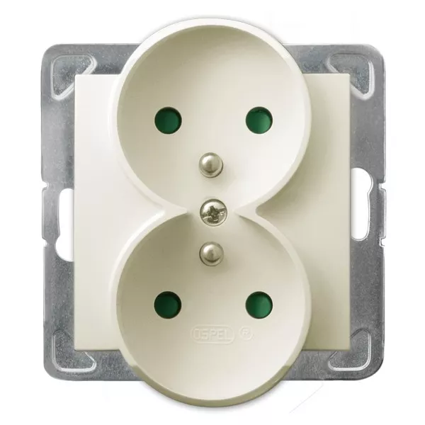 IMPRESJA Gniazdo podwójne z uziemieniem z przesłonami torów prądowych, moduł bez ramki - kolor ecru GP-2YRAZP/m/27