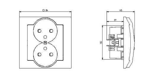 IMPRESJA Gniazdo podwójne z uziemieniem z przesłonami torów prądowych, moduł bez ramki - kolor ecru GP-2YRZP/m/27