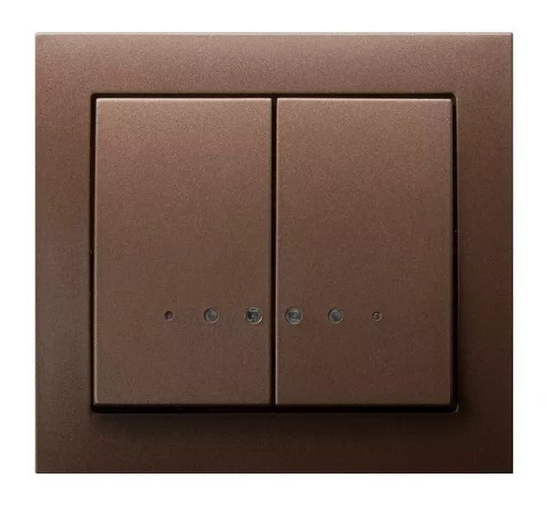 KIER Łącznik dwugrupowy świecznikowy z podświetleniem niebieskim - kolor brązowy metalik