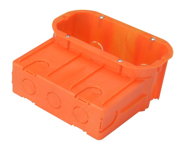 Puszka instalacyjna końcowa z kieszenią podwójna z wkrętami głęboka 2 x O60 - kolor pomarańczowy
