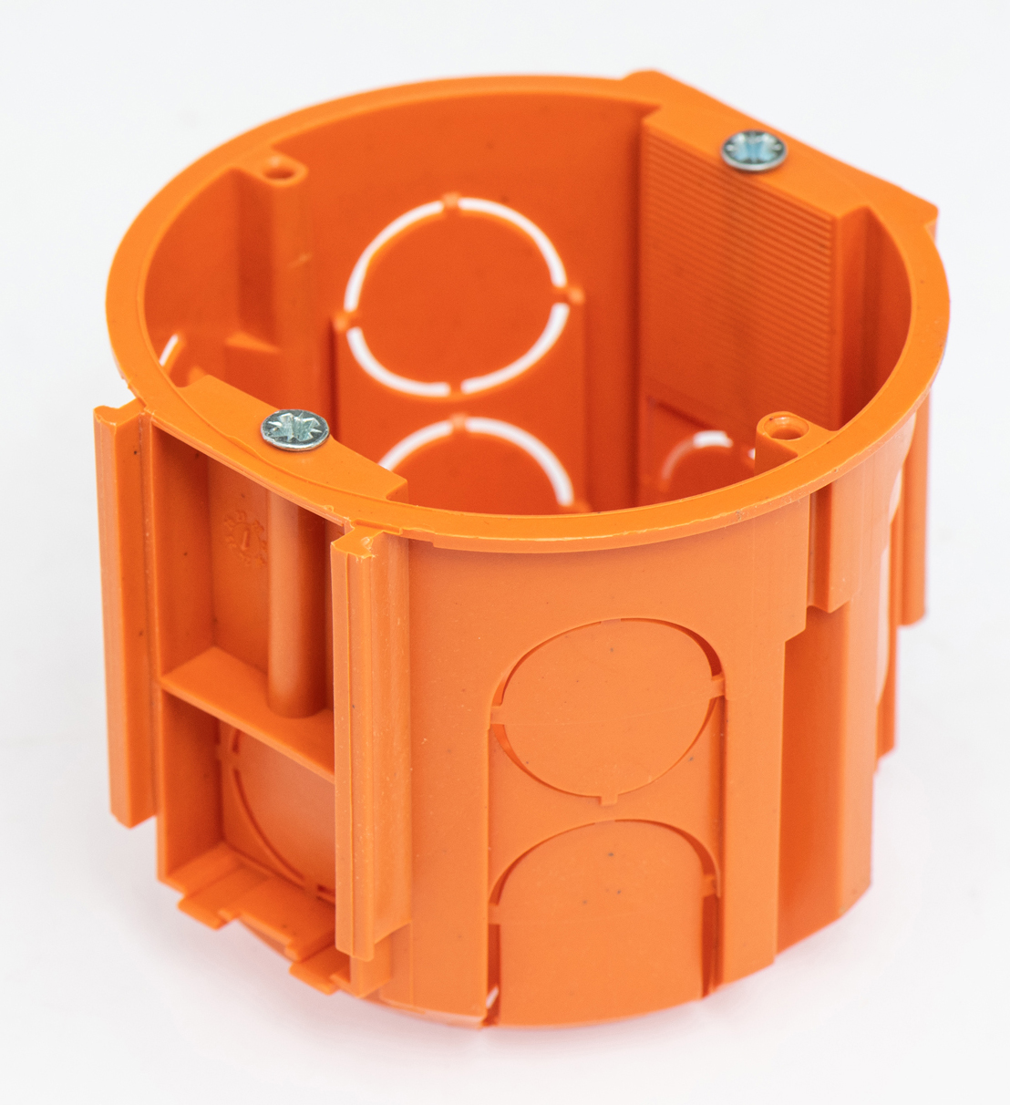 Puszka podtynkowa, płytka 60mm, fi68, łączeniowa, z wkrętami, pomarańczowa, IP30