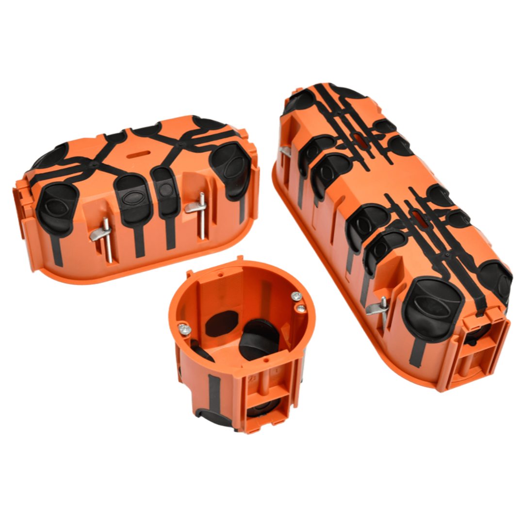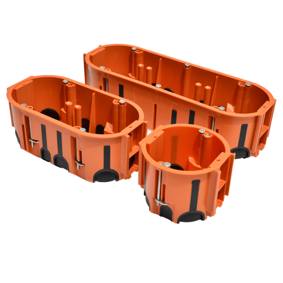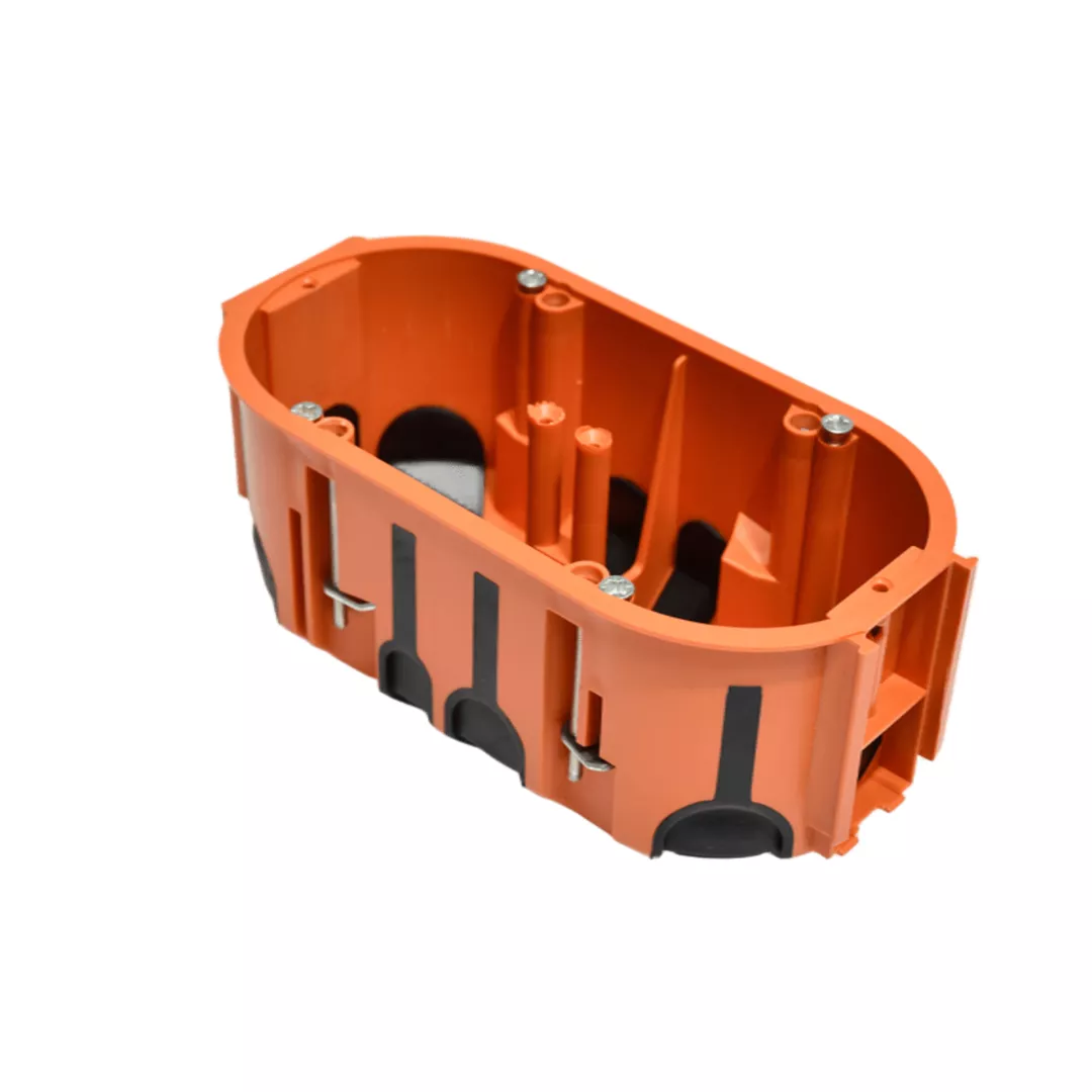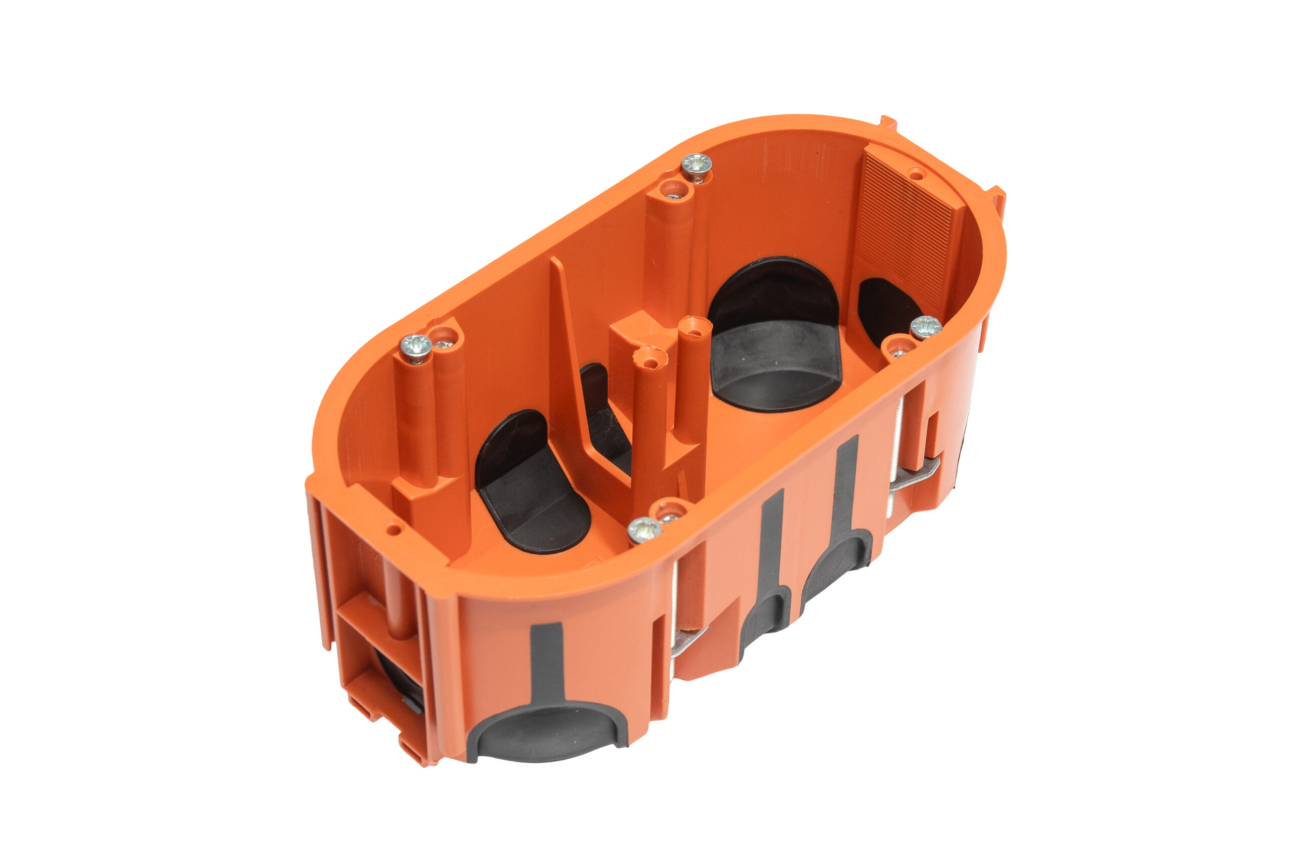 Puszka do pustych ścian ProDuo podwójna, głęboka 60mm, fi68, łączeniowa, z wkrętami, wiatroszczelna, pomarańczowa, IP30