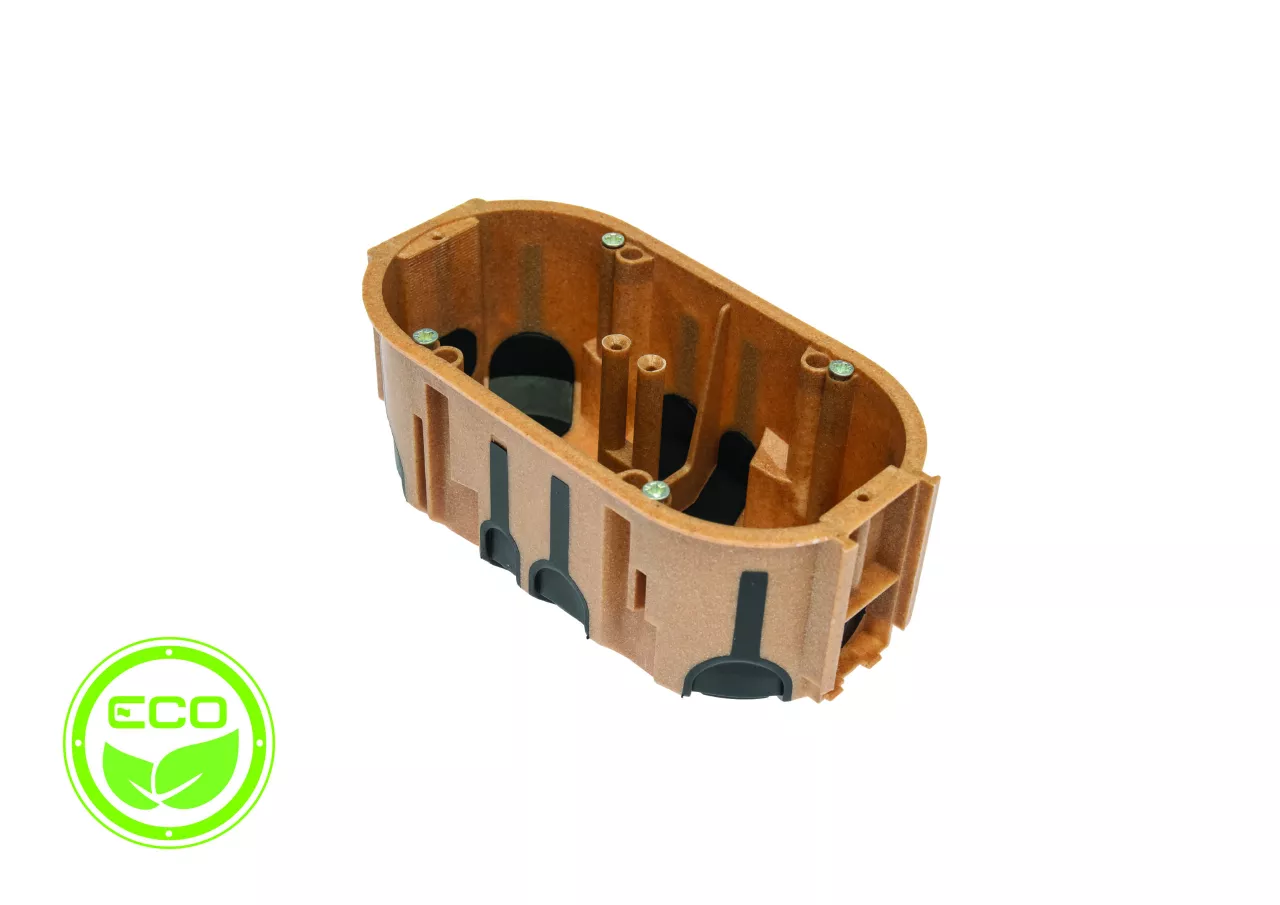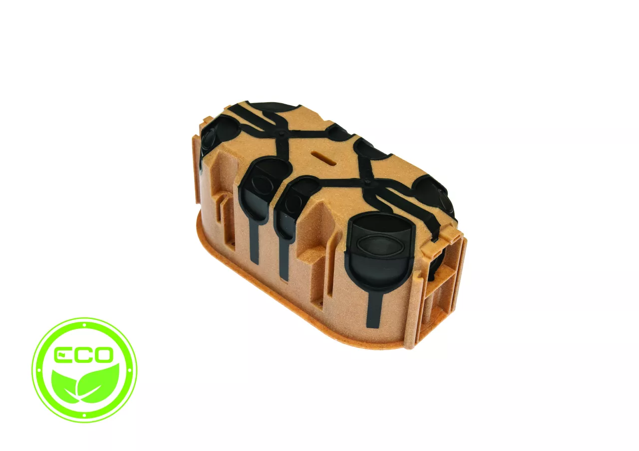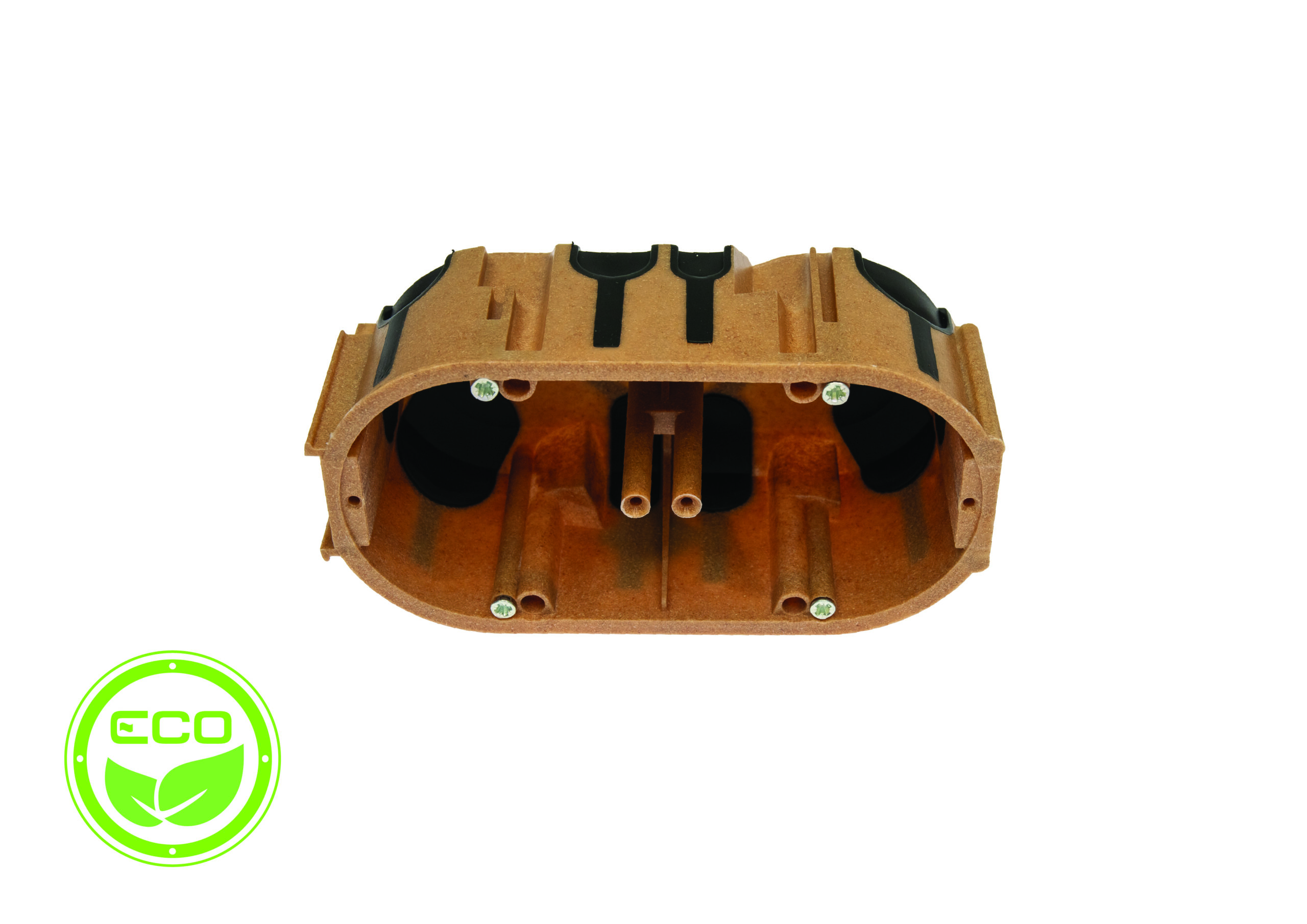 Puszka do pustych ścian ProDuo ECO podwójna, głęboka 60mm, fi68, łączeniowa, z wkrętami, wiatroszczelna, WPC, IP30