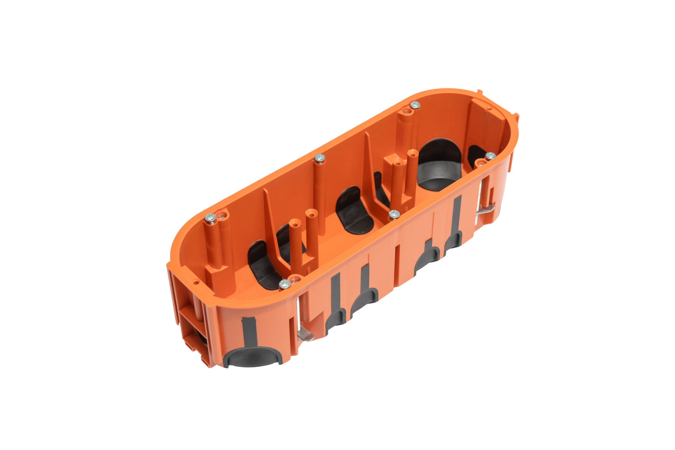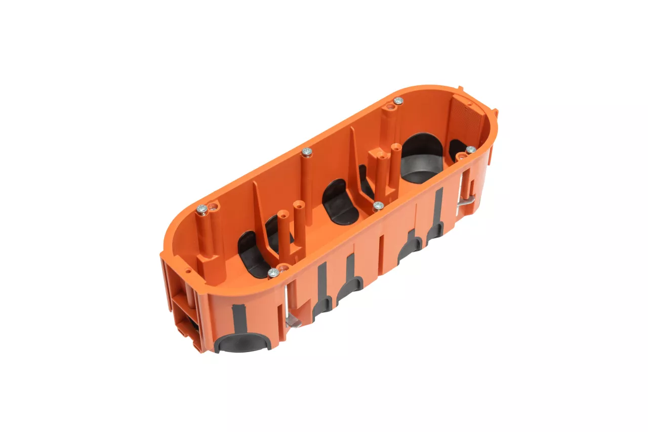 Puszka do pustych ścian ProDuo potrójna, głęboka 60mm, fi68, łączeniowa, z wkrętami, wiatroszczelna, pomarańczowa, IP30