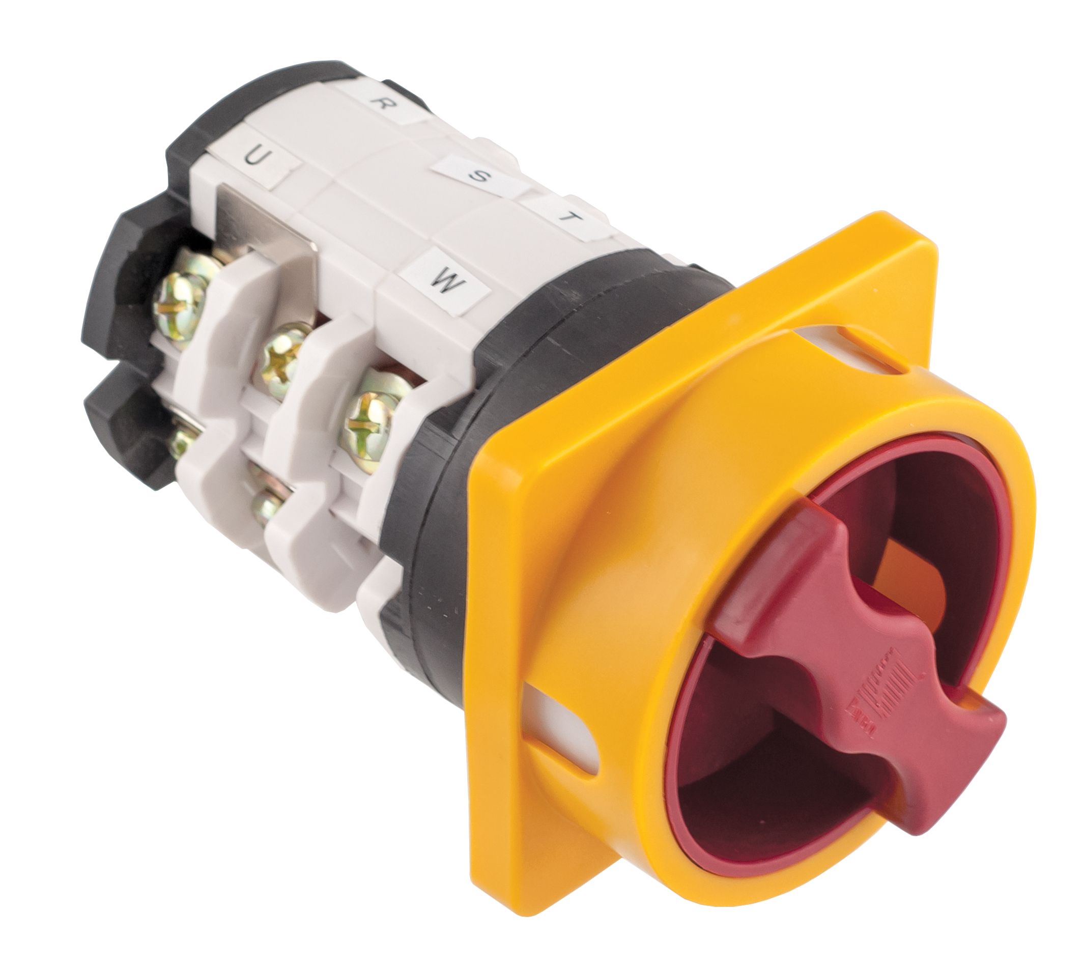 Łącznik krzywkowy tablicowy, L/P, 25A, 690V, 3-fazowy, z możliwością blokady na kłódkę, żółto-czerwony, IP44