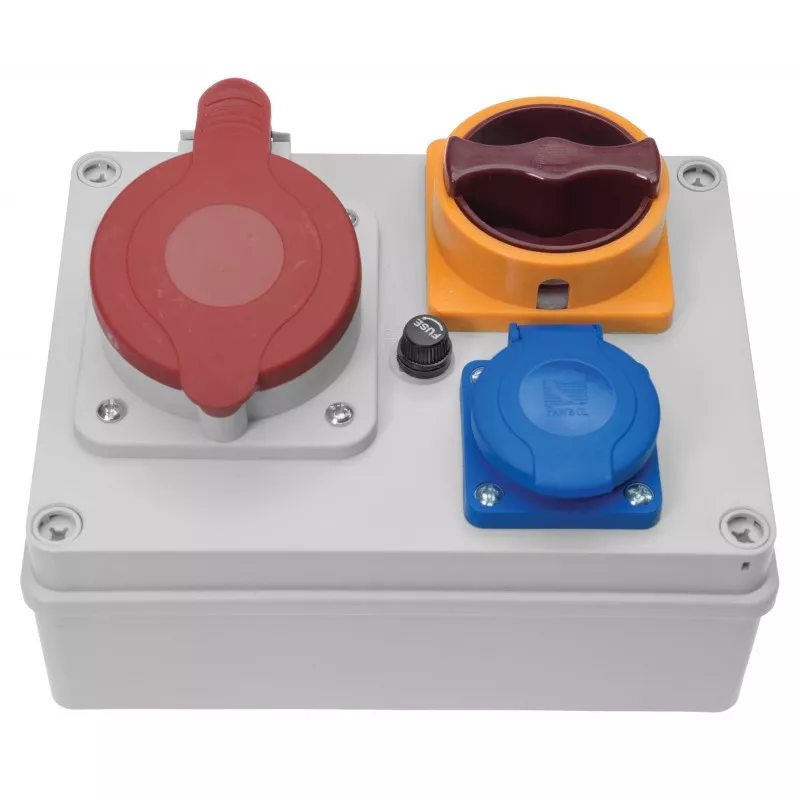 Rozdzielnica R-BOX 190: 1x32A/5P, 1x250V, 1x0/1 40A, 400V, IP44, 1x termik