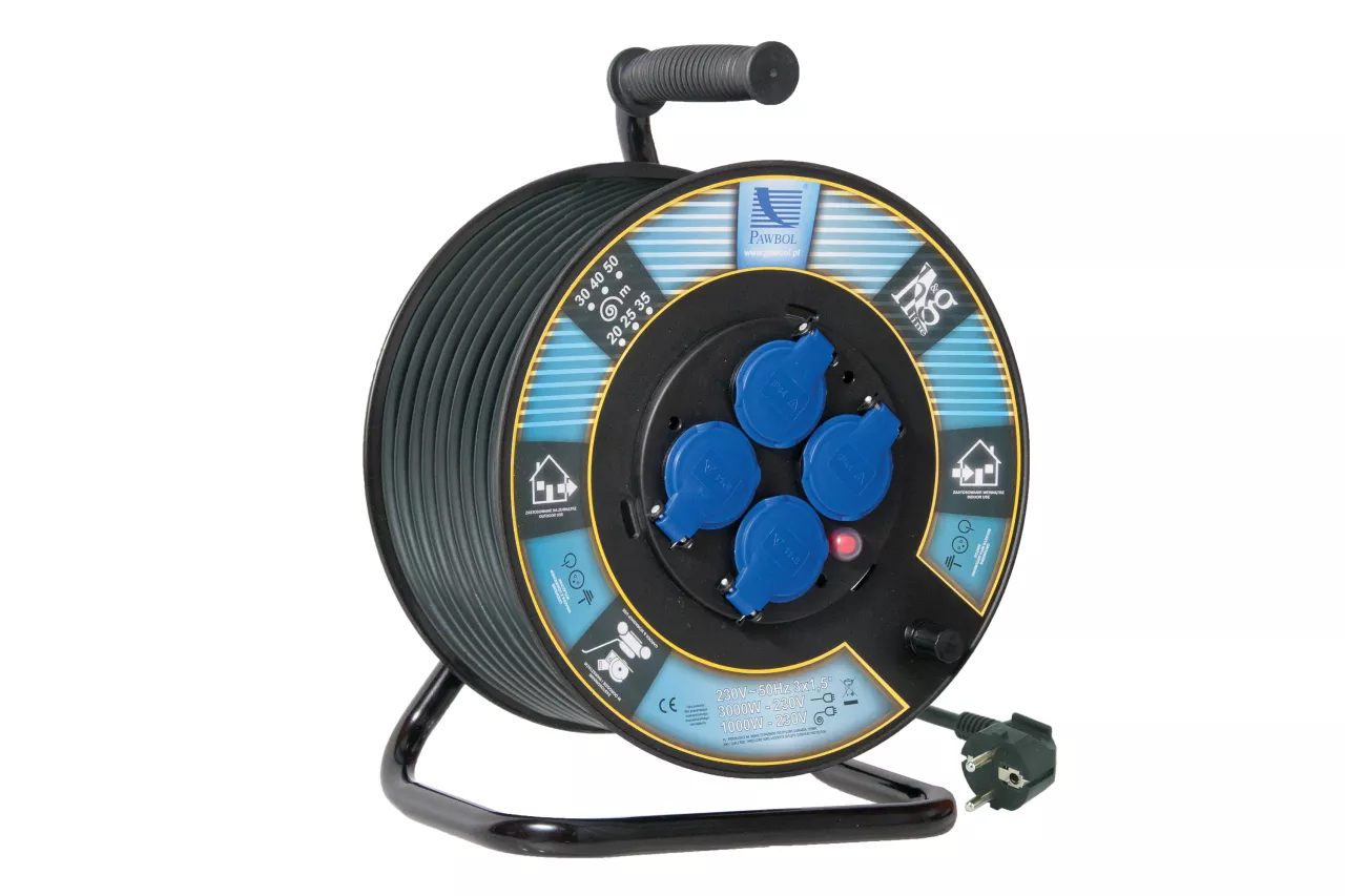 Przedłużacz na bębnie plastikowym, fi300, przewód H05RR-F 3x1,5mm2 - 40m, 4x250V, 250V, 1x termik, czarny, IP44