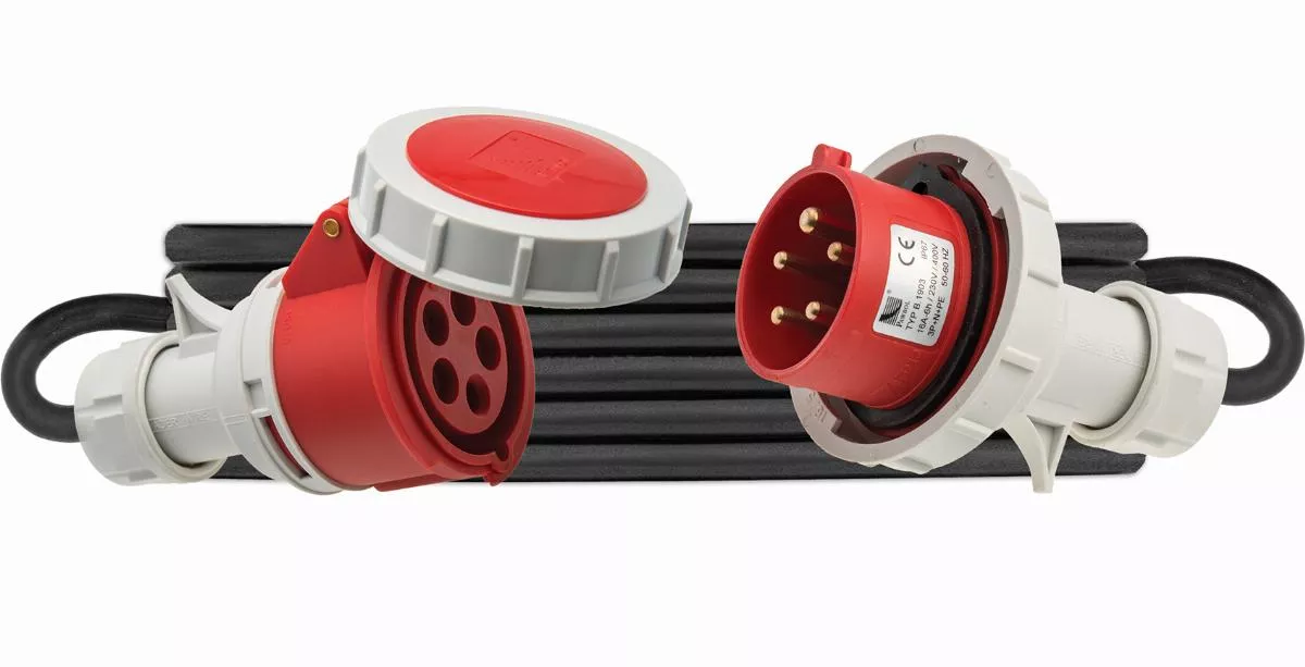 Przedłużacz siłowy z przewodem H05RR-F 5x2,5mm2 - 50m, gniazdo: 16A/5P, wtyczka: 16A/5P, 400V, IP65