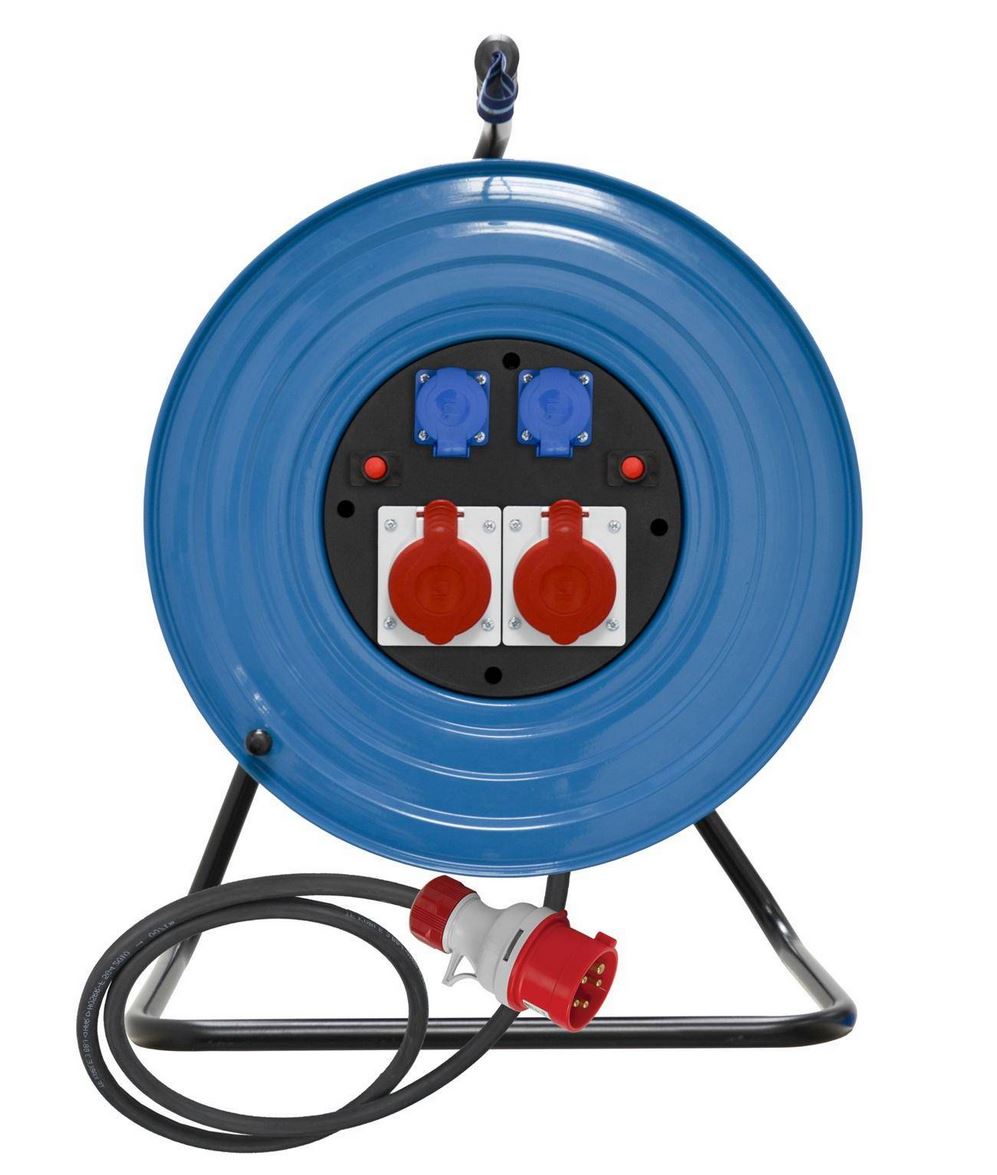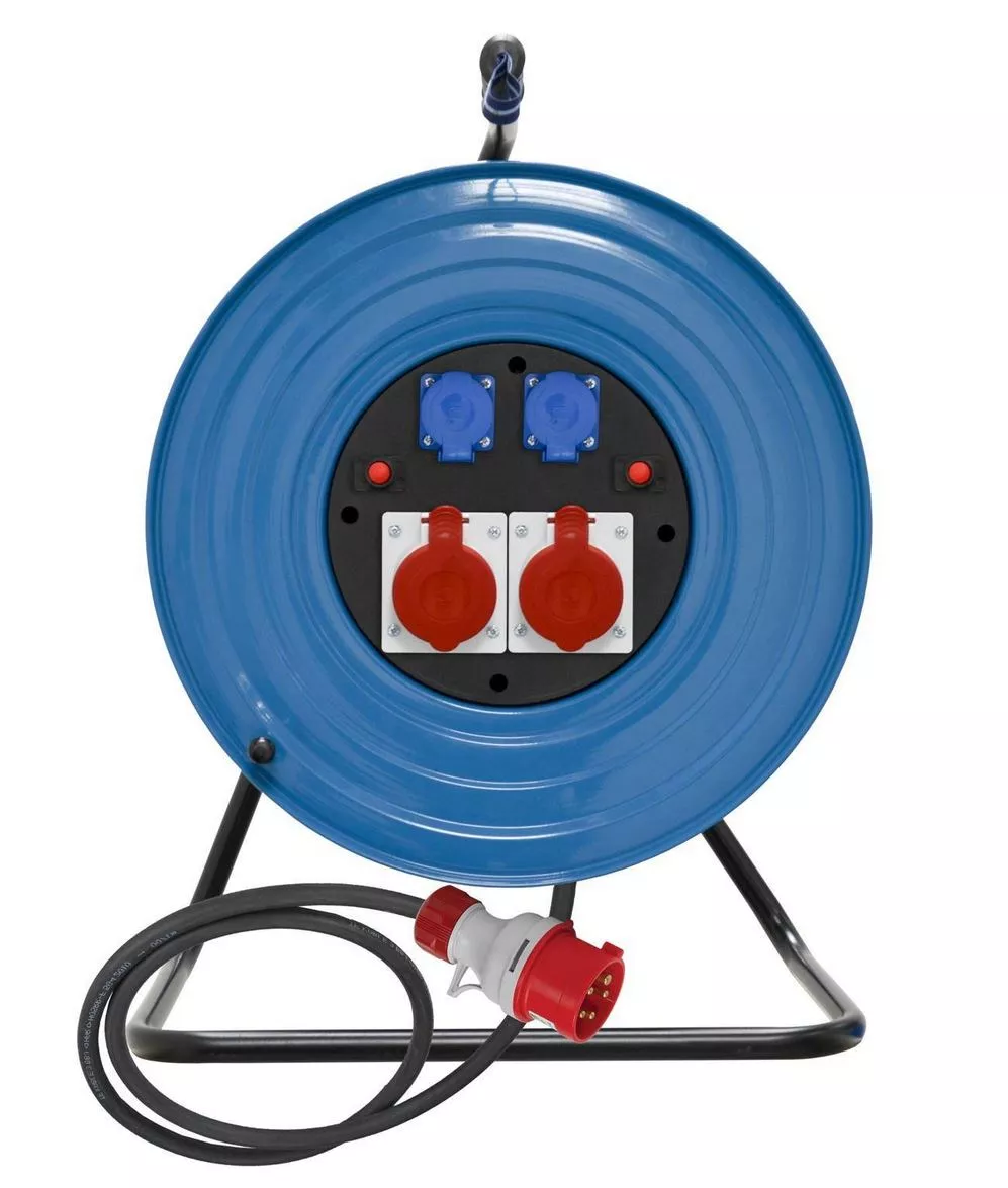 Przedłużacz na bębnie metalowym SOLID LINE, fi470, przewód H07RN-F 5x4mm2 - 30m, 2x32A/5P, 2x250V, 400V, 2x termik, niebieski, IP44