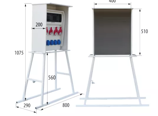 Stojak stalowy do rozdzielnic R-BOX, zabudowany, szary