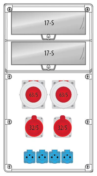 | Liczba gniazd CEE 63 A / 400 V / 5P (1, 2, 3, N, PE): | 2 |