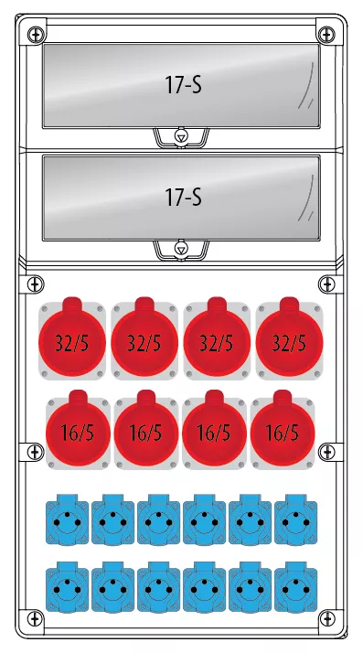 | Liczba gniazd CEE 32 A / 400 V / 5P (1, 2, 3, N, PE): | 4 |