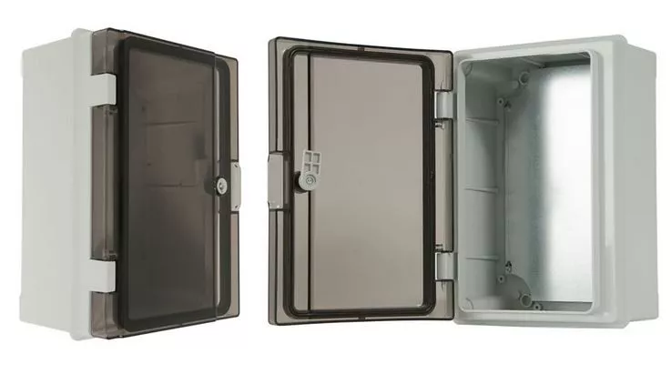 Szafka rozdzielcza hermetyczna 210, z metalową płytą montażową, drzwi przeźroczyste, 220x310x140, szara, IK10, IP65