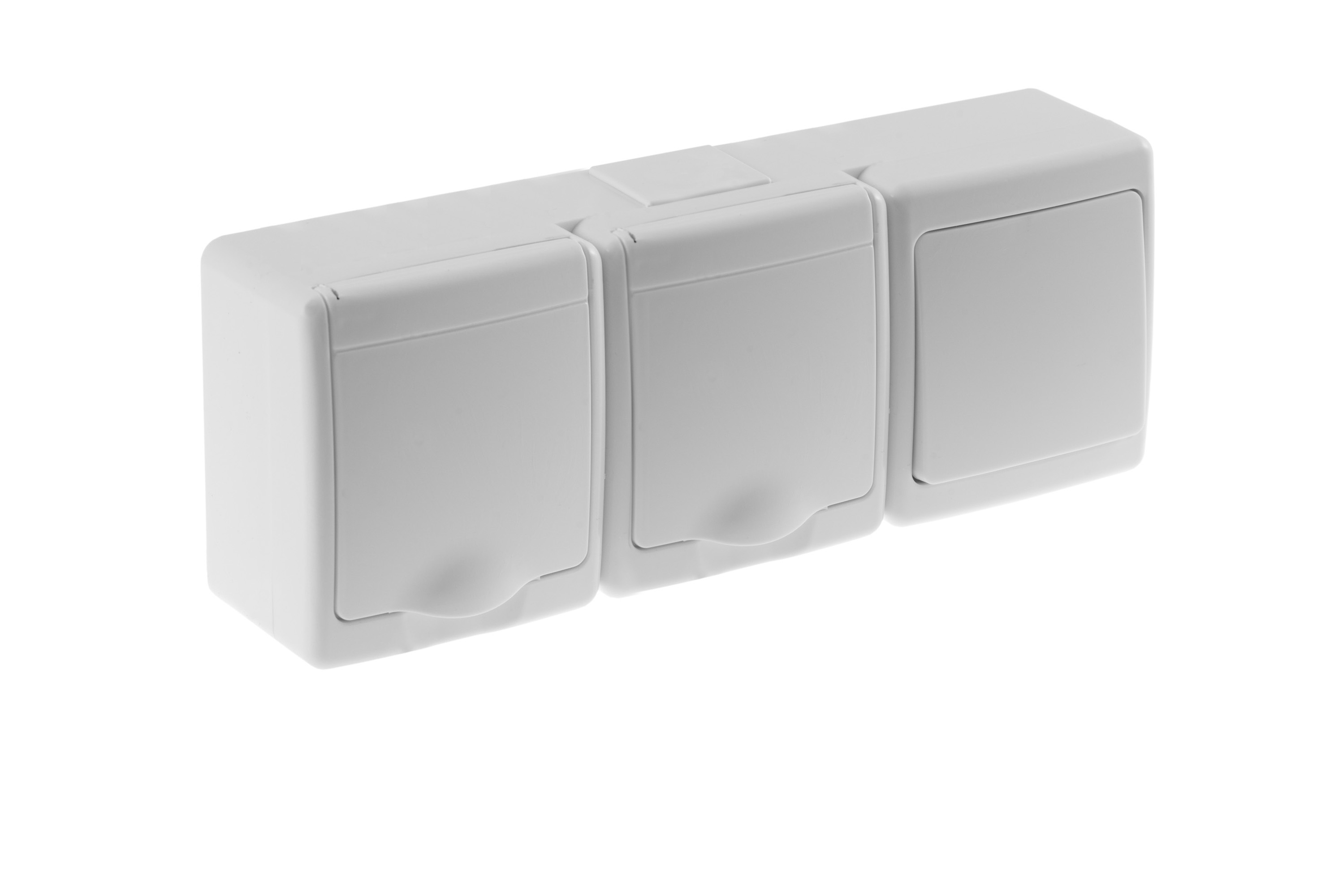 Wyłącznik BETA pojedynczy, jednobiegunowy i gniazdo BETA pojedyncze, białe, biała klapka, IP44