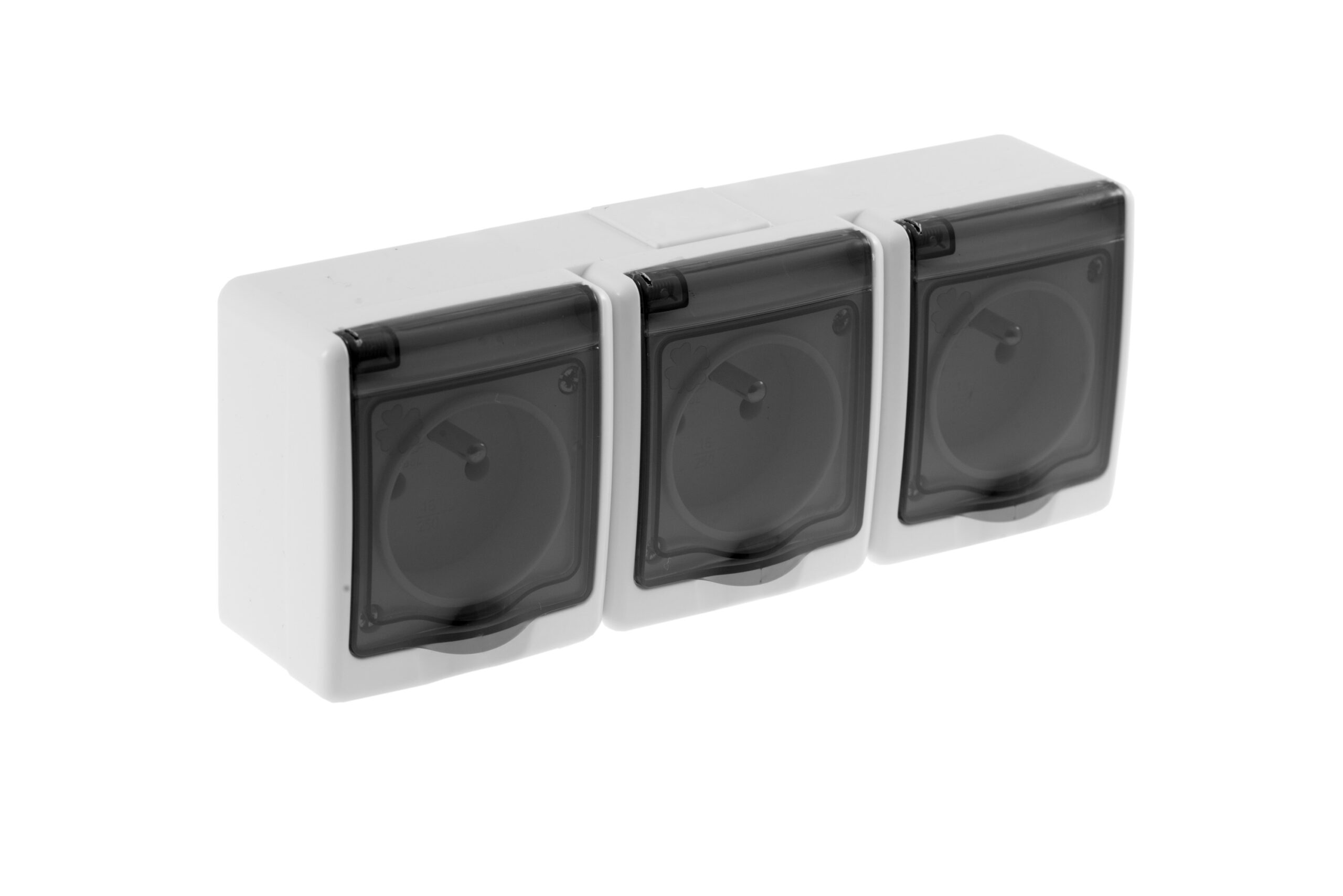 Gniazdo BETA potrójne, białe, dymna klapka, IP44