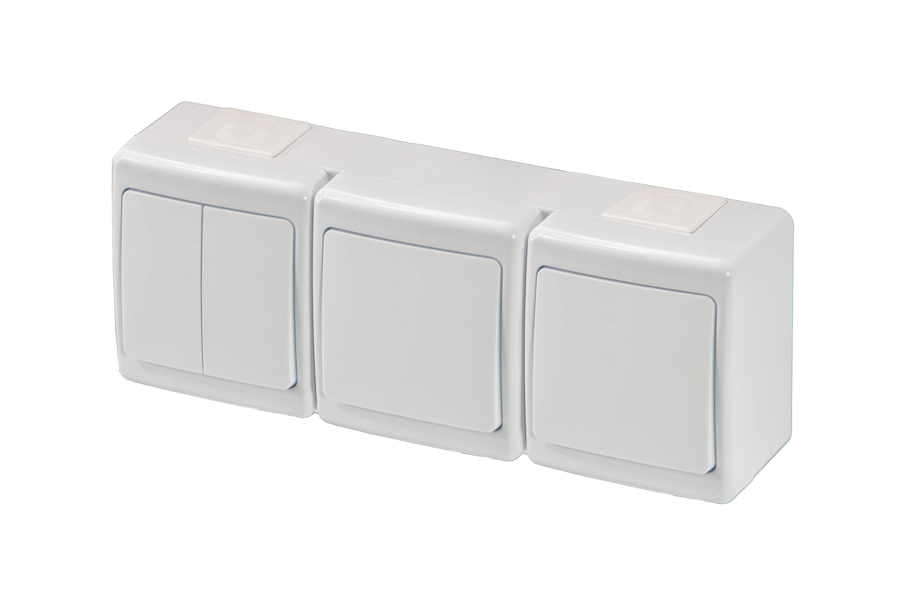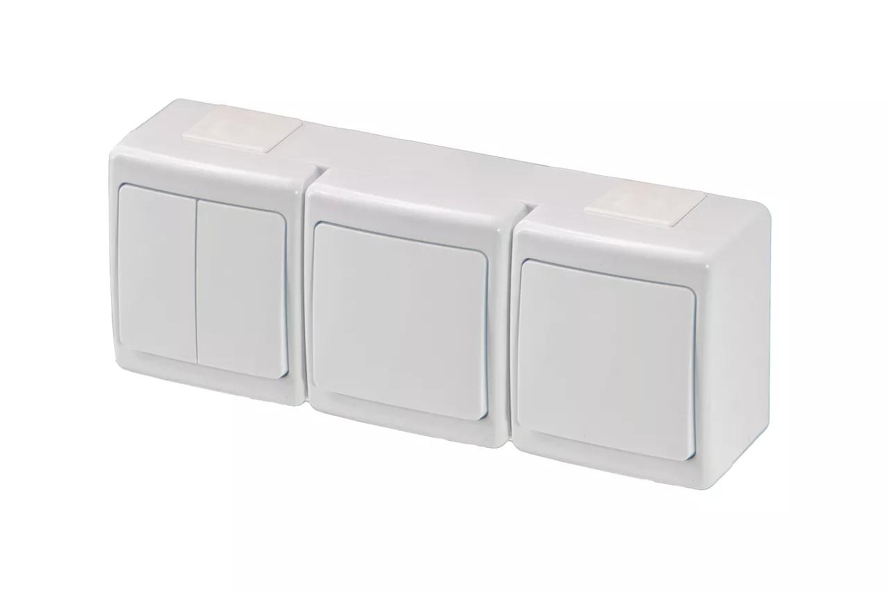 Wyłącznik BETA potrójny, 2x jednobiegunowy i świecznikowy, biały, IP44